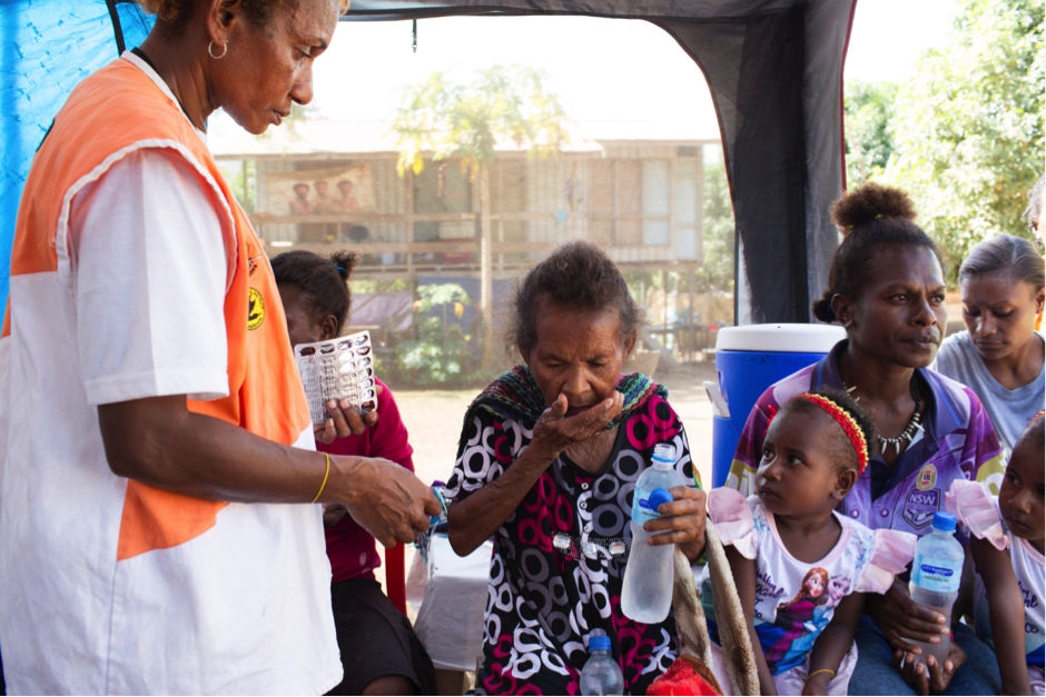 In Papua New Guinea, the Global Fund operates its grant through NGOs, principally World Vision. One World Vision programme is the TB outreach post in ATS Settlement, where about 8,000 people live, including 74 people known to have TB. For those who are not yet diagnosed, the volunteers conduct community outreach and education to spread awareness of symptoms including through theatre, dispel myths rooted in sorcery, and guide people to where they can be diagnosed and treated. Providing treatment close to where people live is essential given that daily treatment is required and people cannot afford a daily bus fare.