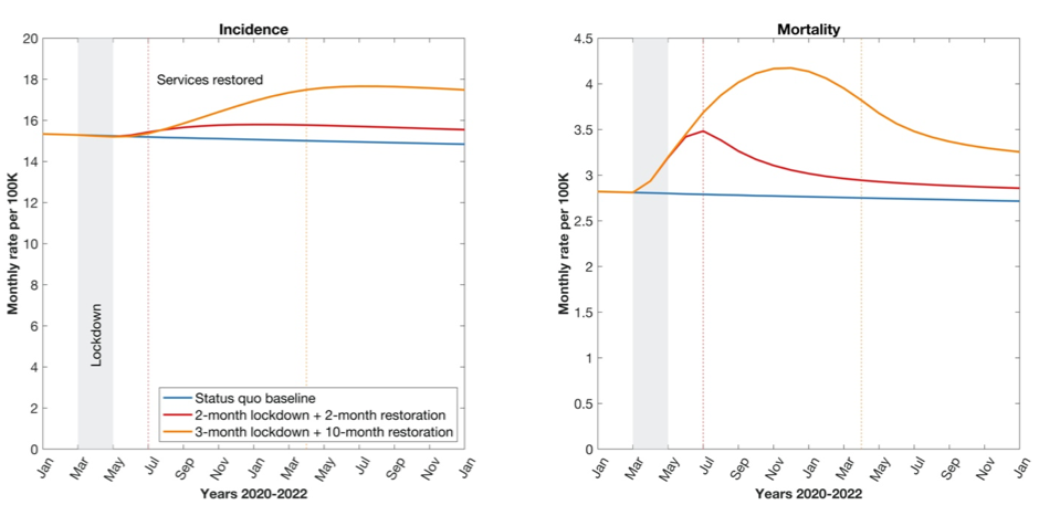 A new modelling report shows that a 3-month lockdown and a protracted 10-month restoration could lead to an additional 6.3 million cases of TB between 2020 and 2025, and an additional 1.4 million TB deaths during this time. The rates of TB incidence and death in 2021 will increase to levels last seen in 2013 and 2016 respectively.